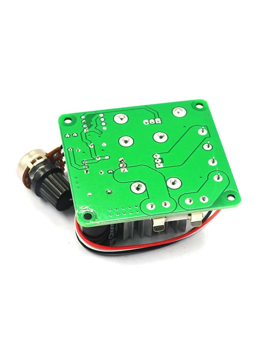 ОписаниеКонтроллер скорости двигателя постоянного тока DC 6–90 В предназначен для точного и плавного управления оборотами электродвигателей в широком диапазоне напряжений. Устройство использует широтно-импульсную модуляцию, обеспечивая эффективное регулирование мощности без значительных потерь энергии. Благодаря этому контроллер подходит для различных областей применения — от лабораторных и бытовых установок до промышленных и любительских проектов. Диапазон входного напряжения от 6 до 90 В позволяет использовать контроллер с разными источниками питания, включая аккумуляторы, блоки питания и автономные энергосистемы. Максимальный выходной ток достигает 15 А, что обеспечивает работу с двигателями средней мощности. Управляемая мощность находится в пределах от 0,01 до 1000 Вт, позволяя гибко настраивать нагрузку под конкретные условия эксплуатации. Частота ШИМ-сигнала составляет 15 кГц, что снижает уровень акустического шума двигателя и обеспечивает стабильную работу даже на малых оборотах. Управление осуществляется с помощью управляющего напряжения в диапазоне 0–5 В, что делает контроллер совместимым с микроконтроллерами, ПЛК и другими системами автоматизации. Такое решение удобно для интеграции в сложные электронные схемы и проекты с дистанционным управлением. Компактная конструкция и надежные силовые компоненты обеспечивают долговечность и устойчивость к нагрузкам. Контроллер скорости DC 6–90 В является универсальным и практичным решением для регулирования скорости и мощности двигателей постоянного тока в самых разных задачах. Основные характеристики: