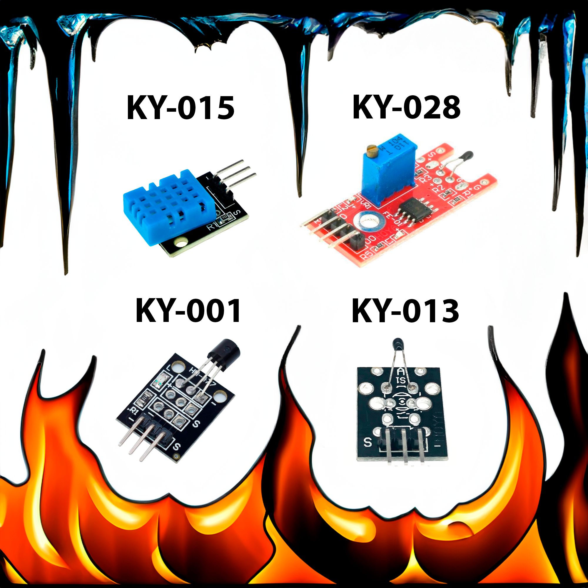 Комплект датчиков температуры KY-001;-013;-028;-015 для Arduino | |