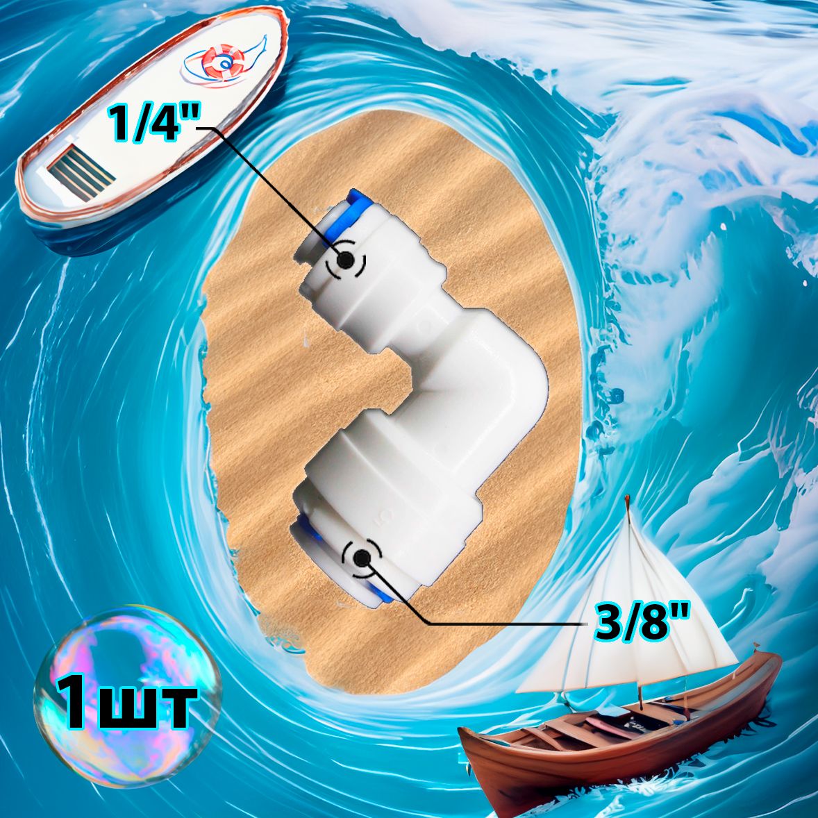 Фитинг переходник Г-образный 1/4" трубка - 3/8" трубка | |