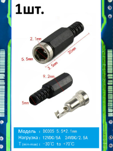 Разъем питания штекер DC005 5.5 x 2.1 12VDC/5A под пайку | |