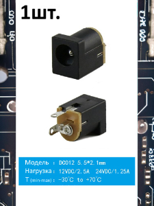 Разъем питания гнездо DC012 5.5 x 2.1 12VDC/2.5A под пайку | |