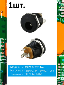 Разъем питания гнездо DC022B 5.5 x 2.5 12VDC/6A под пайку | |