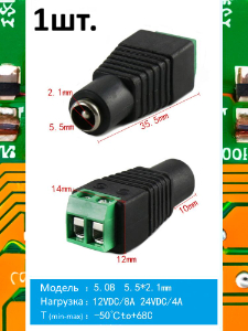 Разъем питания гнездо DC 5.5 x 2.1 12VDC/8A под винты | |