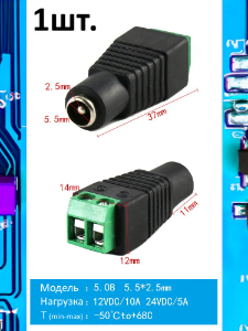 Разъем питания штекер DC 5.5 x 2.5 12VDC/10A под винты | |