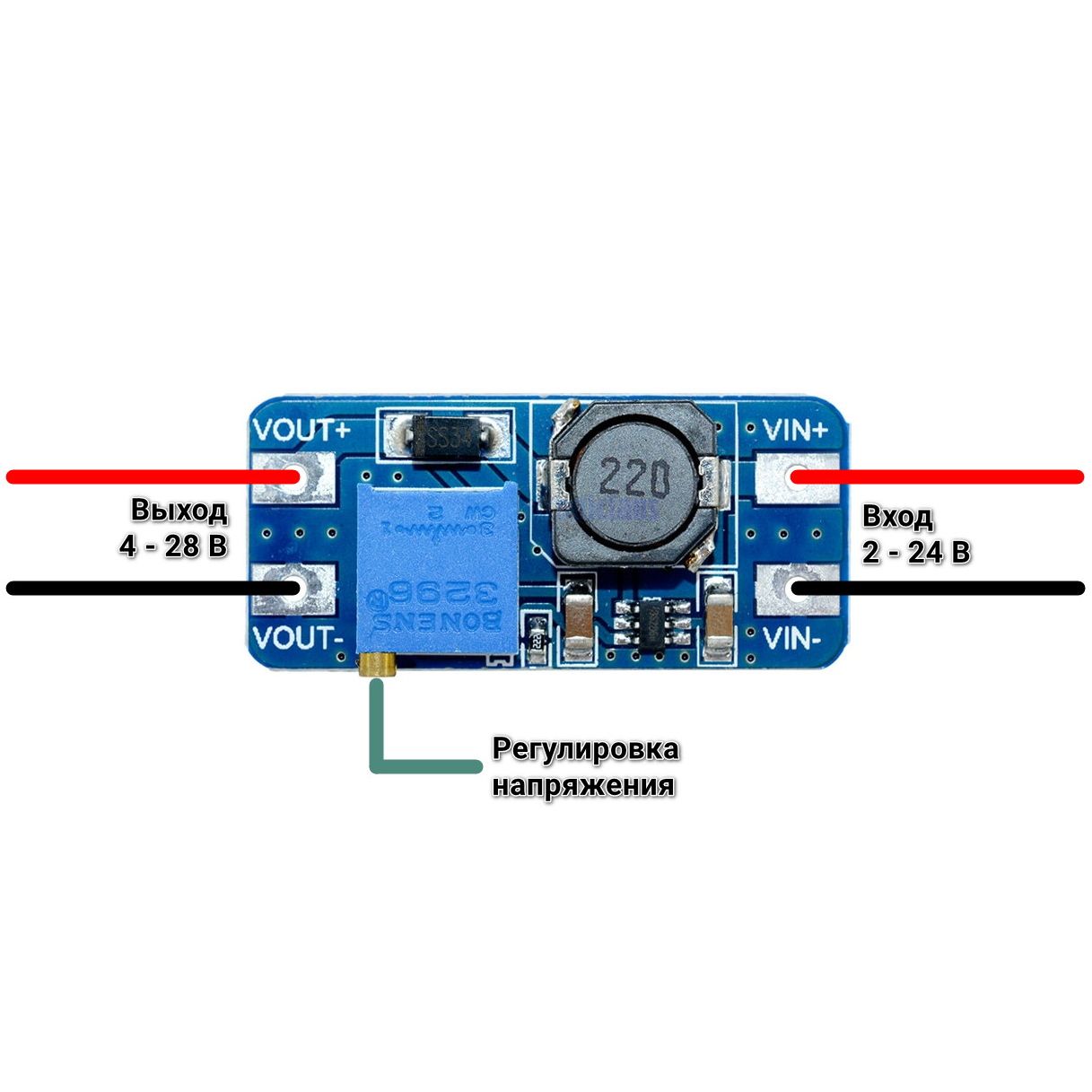 ОписаниеПовышающий DC-DC преобразователь на основе чипа MT3608. Выходное напряжение модуля регулируется подстроечным резистором. Преобразователь напряжения для электронных проектовПреобразователь напряжения используется для изменения уровня напряжения в электрических цепях. Повышающий DC-DC преобразователь увеличивает входное напряжение до заданного уровня, что делает его незаменимым в различных устройствах. Повышающий модуль DC-DC применяется для создания стабилизированных источников питания. Например, модуль повышающий DC-DC может преобразовывать 5 В в 12 В, обеспечивая стабильное напряжение для работы электроники. Такой преобразователь напряжения 5 в 12 отлично подходит для питания различных компонентов. Гибкая настройка выходного напряженияРегулируемый преобразователь напряжения позволяет настраивать выходное напряжение в зависимости от требований системы. Популярные варианты — регулятор напряжения 12 В или 5 В, которые применяются для питания микроконтроллеров, датчиков и других устройств. Повышающие модули обеспечивают стабильную работу даже при нестабильном входном напряжении. Характеристики: