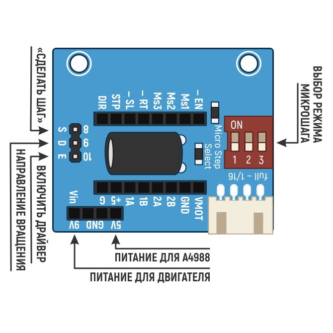 Драйвер шагового двигателя – это модуль, обеспечивающий управление шаговыми двигателями. Один из популярных вариантов – драйвер A4988, который широко применяется в проектах на базе Arduino и других микроконтроллеров. Использование драйвера A4988 позволяет точно контролировать скорость и направление вращения, что делает его отличным решением для 3D-принтеров, станков с ЧПУ и робототехники. Благодаря поддержке микрошагового режима можно добиться высокой точности позиционирования. Совместимость с Arduino и другими контроллерами упрощает интеграцию в автоматизированные системы. Драйвер шагового двигателя гарантирует стабильную работу мотора, обеспечивая плавное и точное управление в различных электронных проектах. | |||||