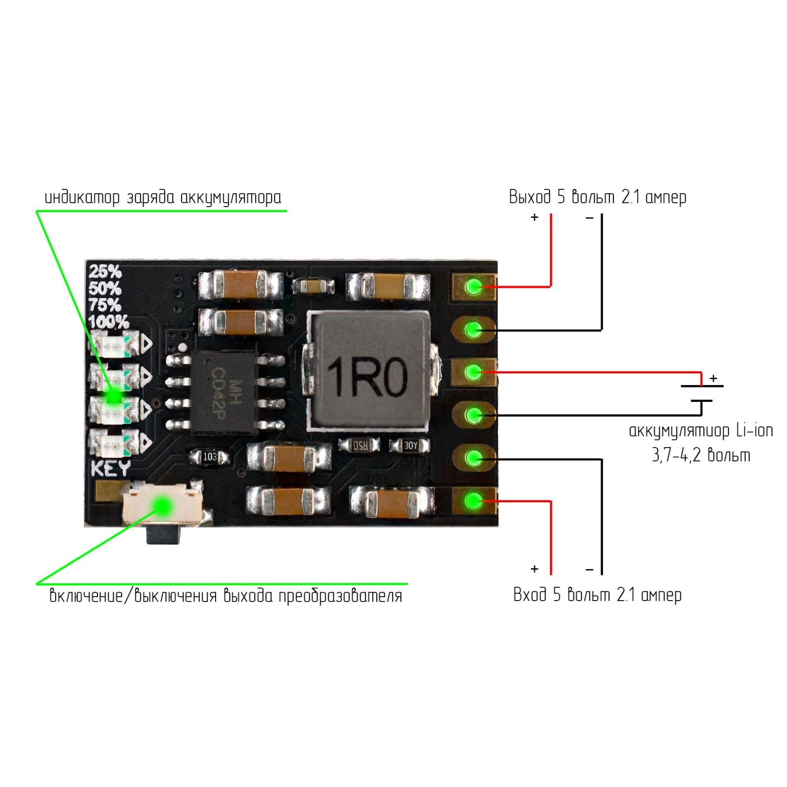 MH-CD42 модуль заряда/разряда Li аккумуляторов 5V 2A | |||||