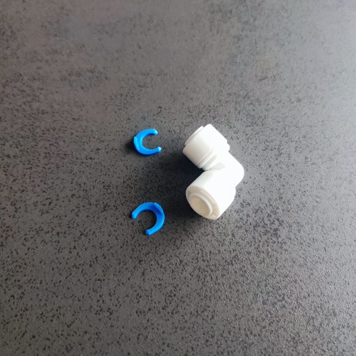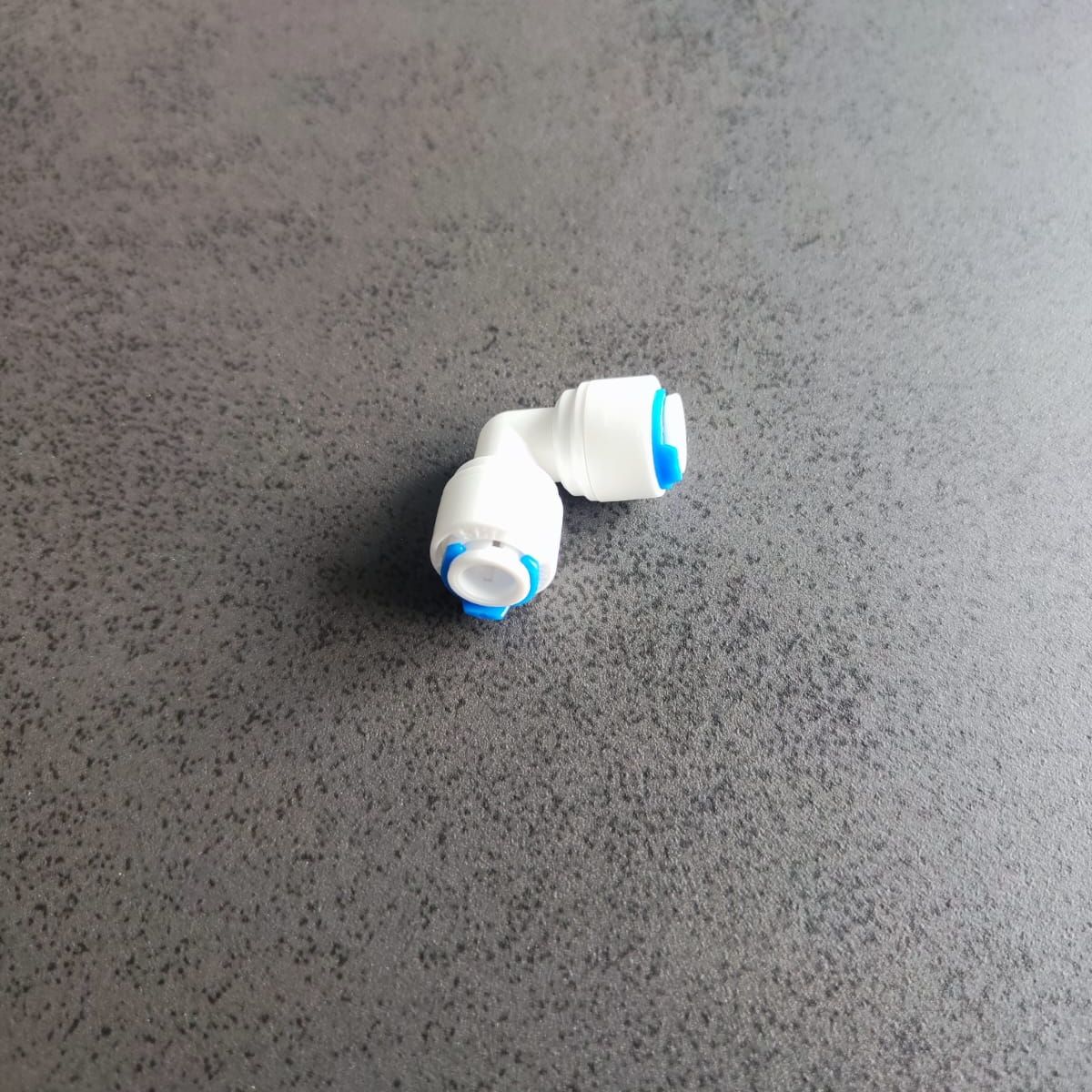 ОписаниеФитинг переходник Г-образный угловой 1/4" трубка - 1/4" трубка применяется для подключения бытовых фильтров к системе водопровода и в системах обратного осмоса. Фитинг оснащен быстросъемной системой зажима, которая обеспечивает надежное крепление трубки диаметром 1/4″. Основные характеристики: