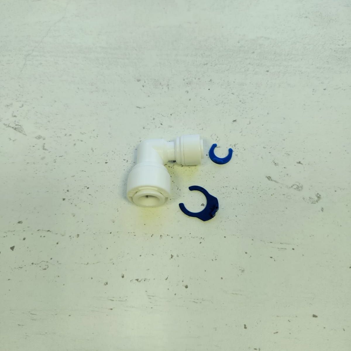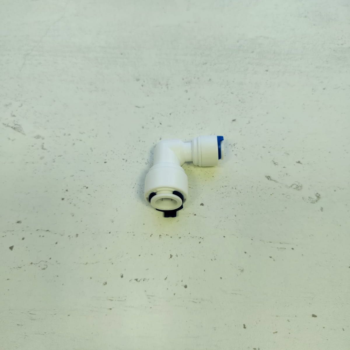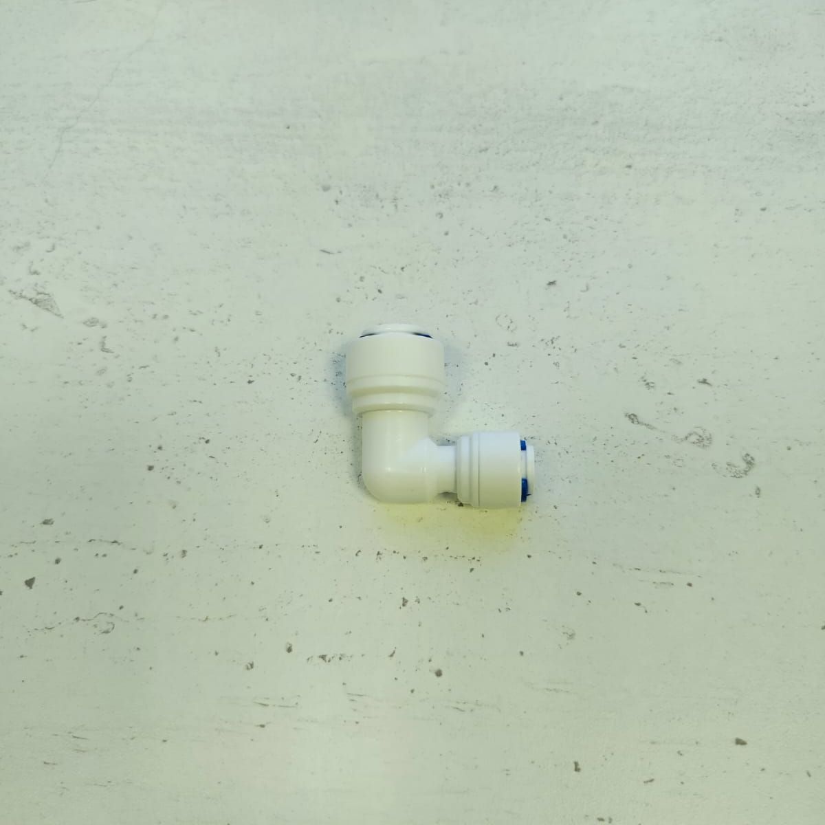 ОписаниеФитинг переходник Г-образный 1/4" трубка - 3/8" трубка предназначен для подключения бытовых фильтров к системе водопровода и обратного осмоса. Быстросъемная система зажима трубки обеспечивает надежное крепление труб диаметром 3/8" и 1/4".