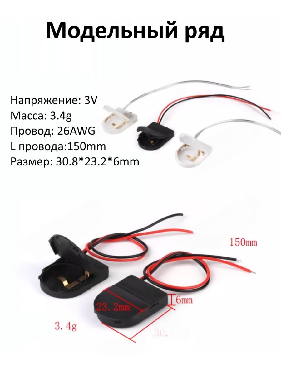 Батарейный отсек для аккумуляторов 1х CR2032 с проводами и выключателем | |||||