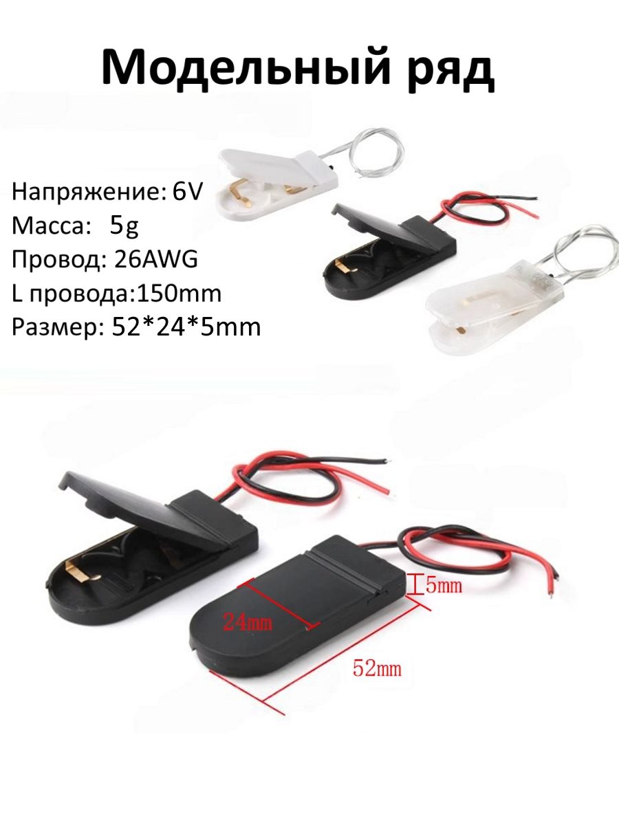 Батарейный отсек для аккумуляторов 2х CR2032 с проводами и выключателем | |||||